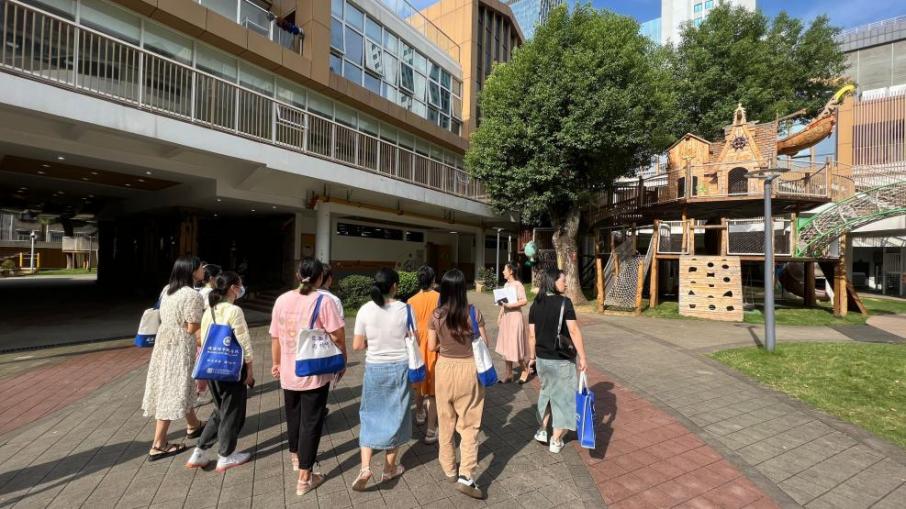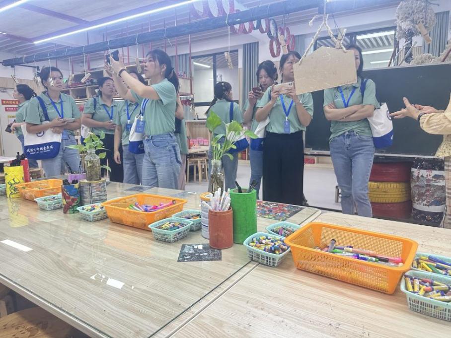 跟岗教师对园所环境布置和班级区域创设进行观摩