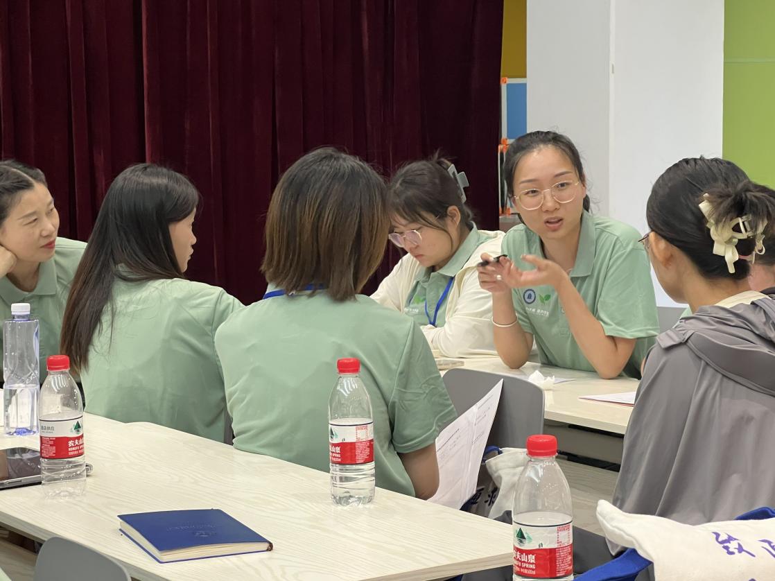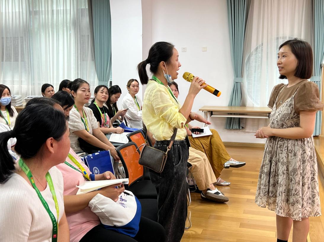 园方向跟岗教师详细解读了幼儿园课程游戏化的设计思路、开发依据、具体推进措施、取得成效等,提升了参训教师对幼儿园课程游戏化工作更深层次的思考。跟岗老师发表自己的想法和见解,相互学习、资源共享、共同进步。
